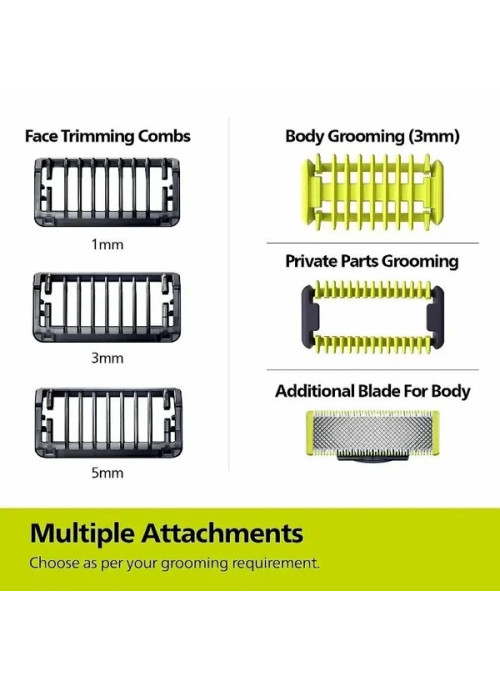 Триммер Philips OneBlade QP1624/10 Face + Body — Подходит для стрижки, подравнивания и бритья волос любой длины на лице и теле. Технология повторения контуров обеспечивает точное и комфортное бритьё, а двустороннее лезвие позволяет брить в любом направлении и создавать чёткие линии.