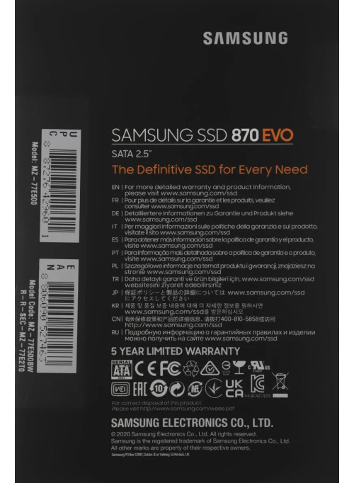 SSD накопитель Samsung 870 EVO 500 ГБ 2.5 SATA (MZ-77E500BW)